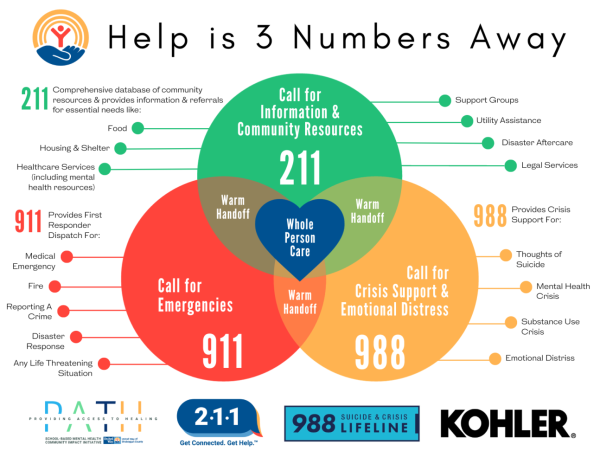 "Help is 3 Numbers Away" (Resource Card about 911, 988 and 211 helplines)